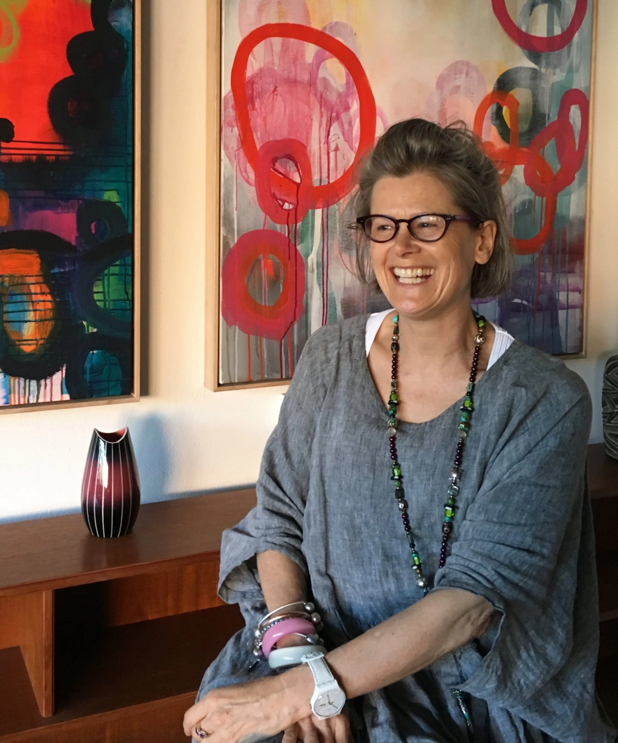 Her childhood was spent on the South West coast of Victoria, is a self taught artist with a love of colour, paint and expression.